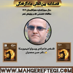 فصلنامۀ بینالمللی ماهگرفتگی سال سوم/ شمارۀ دهم/تابستان ۱۴۰۴ مطالعات تخصصی نقد و پژوهش شعر فلسفهی شاعرانهی ویسواوا شیمبورسکا ✍دکتر حسن...